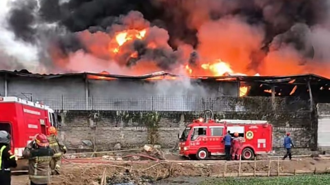 - Pabrik plastik di Cibolerang, Bandung, terbakar hebat pada Jumat sore, 6 Februari 2026.