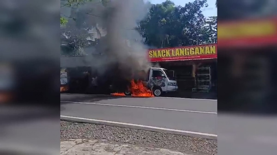 • Sebuah mobil pikap Suzuki hangus terbakar di jalur Sumedang-Wado pada Kamis (19/3/2026) akibat korsleting aki.
